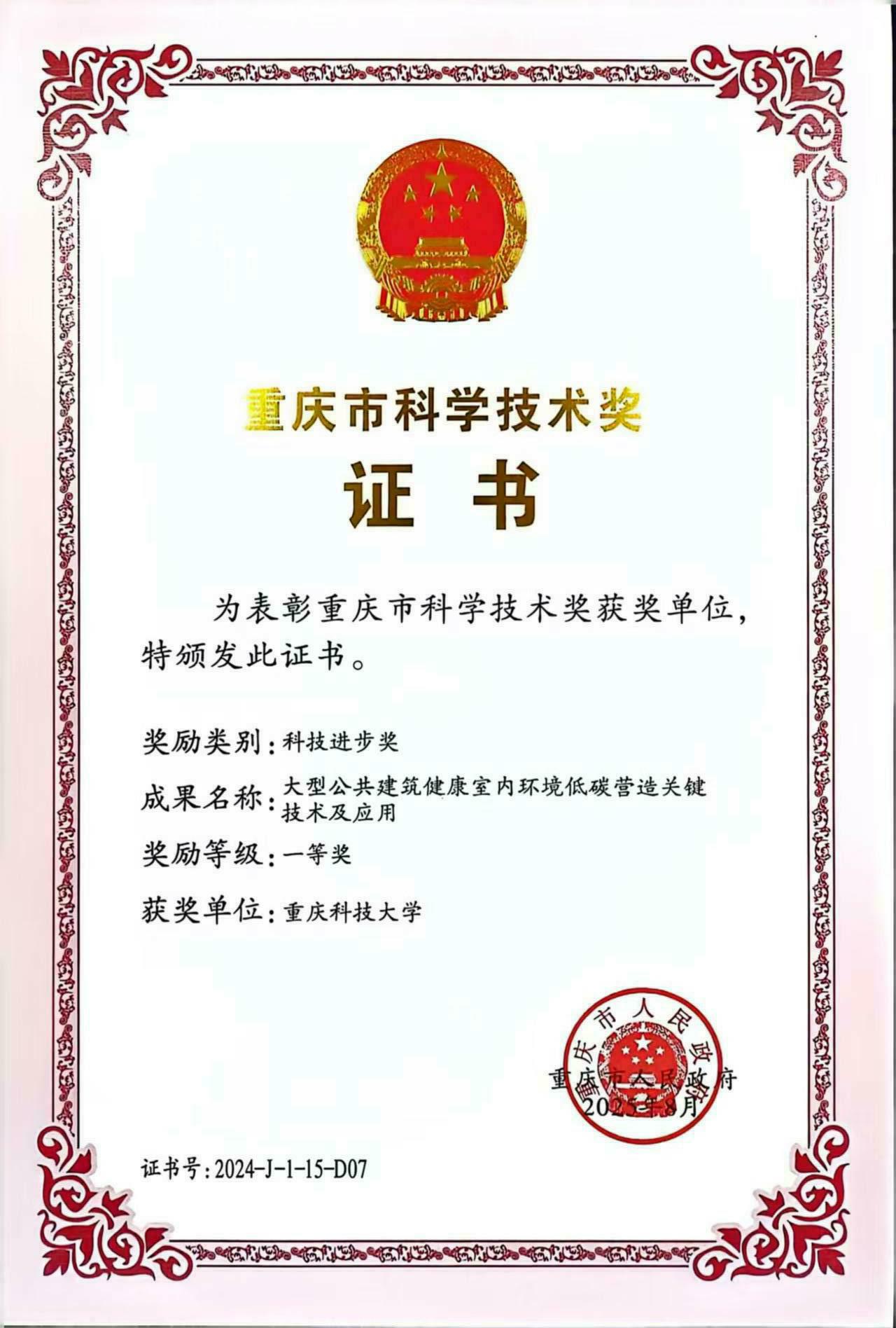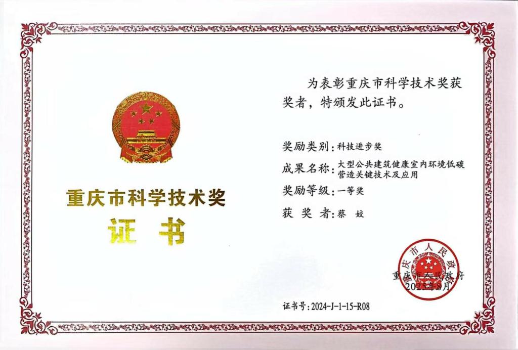 8月28日上午,重庆市科技创新大会在重庆渝州宾馆隆重召开。由重庆科技大学作为参与单位,我院蔡姣副教授作为参与完成人的“大型公共建筑健康室内环境低碳营造关键技术及应用”项目荣获2024年度重庆市科技进步奖一等奖。